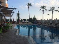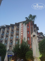Отель хороший, явных претензий нет. Отель в черте города, есть где прогуляться вечером. Можно пройтись по набережной, дойти до стоянки кораблей и до крепости, все это неспешным шагом не утомительно. В 20 минутах от отеля есть торговый центр Аланиум, куда тоже можно сходить и купить все, что необходимо. Все то же самое, что и в обычных ТЦ. Там так же можно купить традиционные сладости Турции, обычные конфетки и сушеные фрукты. Отель. Заселили нас в чистенький семейный номер на 4 человека с видом на окрестности отеля, ну и море немного видно было. В номере есть все, что необходимо для проживания, номер разделён на две комнаты, в каждой комнате есть балкон и кондиционер, единственное, что не очень удобно-это телевизор в одной только комнате. Есть холодильник, тоже один, и два шкафа, в одном из которых стоит сейф.