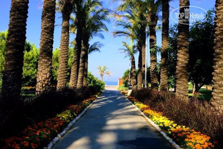 Территория большая, вся утопает в зелени, много фонтанов,