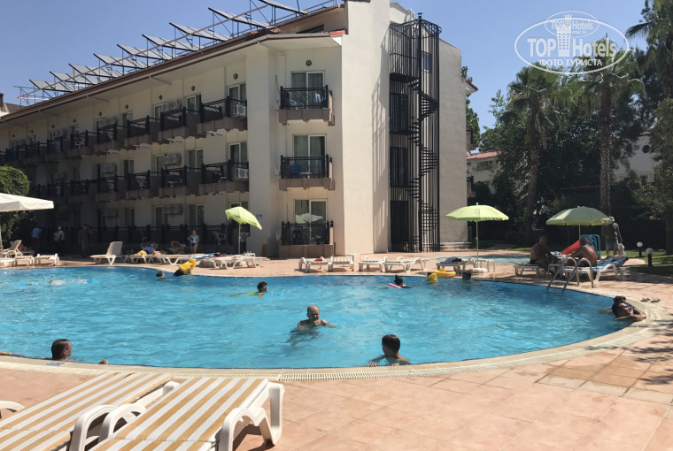 По приезду на ресепшн дали информацию о платных и бесплатных услугах. Размеслили за 5 минут, проводили в номер! Самый простой номер с обычной мебелью, главное чистый и с кондиционером! Wi-Fi работает только на ресепшн. Кормят не на 5*, но мы знали куда ехали, так что притензий нет! На территории отеля два бассейна 170 и 40 см, бар, лежаки, зонтики, детская площадка! Русская музыка! Аниматор для детей проводит конкурсы и танцы, после этого программы для взрослых! Очень вкусный чёрный кофе! Быстрые официанты, все убирают. Весёлые бармены! С отличным настроением! Все это под постоянным контролем управляющего! Гид при встрече все рассказывает об отеле и экскурсиях! В отеле есть сауна и хамам, при желании можно сделать платный массаж. До моря 5 минут ходьбы, отдельный вход! Так же бесплатные лежаки под навесом и у самого моря! Бар, но платный, вечером живая музыка, дискотека, кальян(платно)! Отметили там день рождения ребёнка 5 лет, на берегу моря, спасибо большое за помощь управляющему и аниматору, был торт фейерверк! Ребёнку все очень понравилось. Рядом с отелем есть маркет, где можно купить все что вы захотите, если вас не устраивает еда и напитки в отеле. За 10 дней нагрелись, отдохнули, все отлично!))) Цена = качество! Большое спасибо (Nastia)