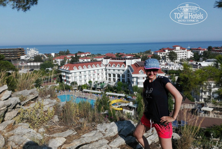 Отдыхали в отеле с 23 июня по 3 июля с мужем. В Турции были в первый раз. Теплая гостеприимная страна, шикарная природа. Очень понравилось.Дух захватывает от такой красотищи. Что касается отеля. У него очень удачное месторасположение. Это ОГРОМНЕЙШИЙ плюс. На рецепшене работники мне не понравились. Я не люблю, когда меня "облизывают", но конкретно их работа была на грани "пофигизма". При заезде, нам махнули куда-то рукой в сторону, как оказалось столовой. Сходите, поешьте, потом заселим. Отель не показали, не улыбнулись, не сказали даже "Добро пожаловать" и тд. Это с учетом того, что мы приехали в отель в 20 30 одни. Загружены они не были большим количеством гостей. Дабы не обижать Али, которого все хвалят, хочу отметить, что его в тот вечер не было. Позже, когда мы с ним познакомились, он тоже на нас произвел приятное впечатление . Заселили сразу после ужина, в главный корпус на 4 этаж. Номер 401. Фотки сделаны из номера. Там 2 открытых балкона. Сначала мы испугались громкой музыки, так как жили практически на танцполе амфитеатра . Но вид прекрасный открывается. А шумят они обычно до часов 23. Один раз было до 23 30. Мы без ребенка отдыхали, нам не мешала музыка.В номере мыло и шампунь мне понравились.Убирали в номере каждый день! Утром поют петухи. Организовано все в отеле, на мой взгляд, хорошо. Целый день есть,чем заняться. Кормят нормальноо. Кому надо много мяса- езжайте в 5 звезд. Мне надо много овощей- здесь они в большом количестве были представлены. Овощи,фрукты, зелень, сыры, оливки - это все я очень люблю. Официанты работают отлично. Плохо моют тарелки и чашки- есть такой грешок . Не знаю, кто за это отвечает - надо контролировать мытье посуды лучше. Это однозначно! Команда аниматоров очень хорошая.Каждый день развлекают народ. Акваэробика, водное поло днем. В бассейне работают горки. Каждый вечер программу меняют, но она повторяется каждую неделю. Фаер-шоу, пенная вечеринка, караоке, турецкая ночь и т.д. Алкоголь не очень много употребляли. Но то,что пробовали вполне устроило. При выезде из отеля, нас прохладно проводили. Рейс перенесли, но в номер нас уже не пустили назад подождать самолет. Мы пол-дня просидели в холле. В целом, поездка удалась. Мы отдохнули хорошо. Приятные воспоминания останутся с нами надолго. А минусы всегда есть, все идеально быть не может . Тот,кто сравнивает этот отель с совком нашего Краснодарского края, по ходу дела давно в совке не был. Я в прошлом году с семьей была в Геленджике. Воспоминания еще очень "яркие". Сравнивать тут нечего и ни к чему. Удачи отелю! Учесть все свои недочеты и работать на радость туристам!