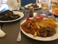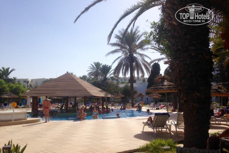 Отдыхали в отеле в конце июня 2017года. Очень рады, что выбрали именно этот отель, т. к. слушая отзывы туристов о других отелях иногда волосы становятся дыбом. По порядку. Приехали в 11 утра, номер дали сразу, угостили коктейлем на ресепшене, помогли отнести вещи в номер. Осмотрев номер поняли, что не хотим вид из окна на стену и парковку поэтому попросили (15$ в паспорт) поменять на номер с видом на море. На все ушло не более 10 минут. Далее: номер стандартный, все исправно, белье чистое, матрасы приличные, мебели в номере даже больше чем нужно, сантехника старая, но исправная, есть фен, кондиционер центральный, вешалок в шкафу много. Далее по питанию: кормят часто и на любой вкус. Завтрак: круасаны, булочки, яйца, блины, мюсли, йогурты, овощи, сыры. Обед и ужин: 2-3 вида говядины, птица каждый день + морепродукты или рыба и один раз даже свинину давали; овощи, салаты, вкусная пицца каждый день, пасты, картофель фри и айдахо, лазанья. Многие блюда приправлены карри или томатным соусом, но т. к. я не любитель то всегда находила блюда без этого. Выпечка не самая лучшая, но это и хорошо наверное. Из фруктов каждый день арбузы и дыни, иногда сливы и персики. Напитки:красное и розовое вина не очень, белое не плохое, пиво вполне приличное для отеля, в лобби и баре в бассейне можно выпить крепкие напитки местного производства. Мы пили мускат и цитрадин- очень сладкие, но со льдом нормально. Также можно заказать коктейль. Пляж: территория огорожена, местных не пускают, вполне чисто, воровства нет, лежаков много, но после 10 утра и народу многовато, поэтому если хотите лежать ближе к морю надо приходить пораньше. Море прохладное, несколько дней штормило и было мутное, обычно утром вода спокойная, а к вечеру появляются волночки. В воде у берега плавает немного водорослей, но это не раздражает- натур продукт как никак. Бассейн: не большой, но комфортный, есть джакузи и гидромассажные лежаки, в середине бар. Лежаков много, зонтиков мало, но все с комфортом отдыхают под пальмами. По уборке: убирают по требованию, моют все с дез. средствами, на чай мы оставляли не больше динара. Развлечения: есть фитнес зал, но совсем не о чем, мужу-спортсмену там делать было нечего. Также можно один раз сходить бесплатно в хаммам. Анимация с 10 утра до 12 ночи, не навязчивая, туристам-тусовщикам будет скучно. У выхода на пляж есть кабинка с фиш-массажеи и водными развлечениями: все цены сбивайте процентов на 40. Мы с мужем вдвоем везде ходили по цене одного человека. И если вы чего-то не хотите, то не сюсюкайтесь, а твердо скажите, что вам не надо это, иначе не отстанут. И пару слов об экскурсиях: мы брали трип в Сахару на 2 дня у Корэл трэвэл и это было ужасно. Мало того, что эта экскурсия в поинципе достаточно тяжелая физически, так еще и Корэл изгадил все вдребезги. Слышали, что у Библиков и Анекса самая лучшая программа этой экскурсии. А если ваш оператор тура Корэл или Санмар, то отельные гиды могут вам сказать, что вы не имеете право брать у других операторов- не верьте иначе испортите себе всю экскурсию и вернетесь больные и разбитые, как это сделали мы.