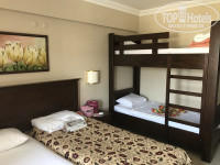 2. Заселение. В связи со сложившимися обстоятельствами до отеля мы добрались только к 2 часам ночи (спасибо чартерам от азур эйр). Ехать от аэропорта около 2х часов. На ресепшн говорят только на английском. Благо хватило знаний обьяснить, что номер на 5 этаже мы не хотим. На удивление нам разрешили выбрать, дали 2 ключа от номеров на 2 и 5 этаже. Мы пошли смотреть. Номер на 2 был с дополнительной двухъярусной кроватью, видимо семейный. На 5 этаже номера низкие, крыша чуть срезана, что выглядит довольно таки специфически. Мы выбрали семейный. Отличный номер, чисто. Уборка каждый день. Только надо учесть, что шампуни и гели не дают, только жидкое мыло.