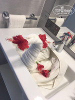 Отель: совершенно новый, но уже с недостатками. Персонал не говорит по русски. В номерах нет зубных принадлежностей, тапочек, дверь в ванную не закрывалась.. по тв всего 2 русских канала. Уборка очень небрежная, пятна на полу, стенах, везде... пятна на постельном белье, полотенцах, вода очень хлорирована, в номере пахнет неприятно, кто придумал эти светильники прям над головой?? Алкоголь в мини баре сомнительного качества, нам меняли бутылку рома, но она была не новая(не полная), либо долили, либо перенесли из другого номера... напротив стороиться еще один корпус отеля, но нам это не мешало.