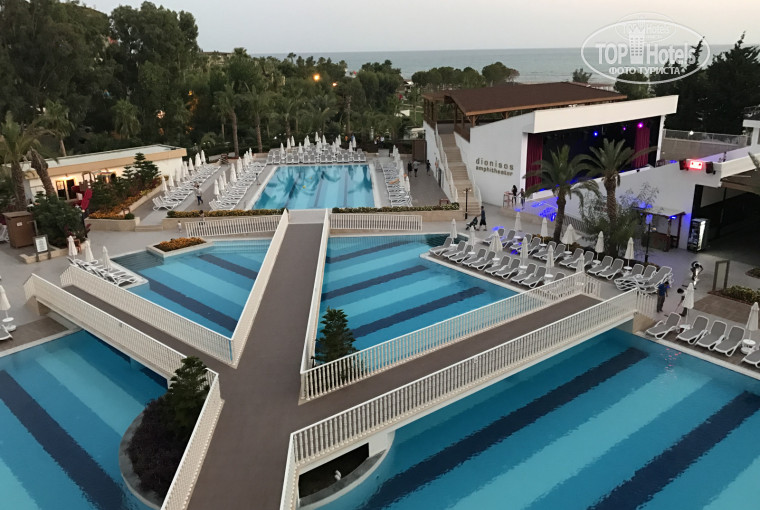 Отдыхали в этом отеле семьей с двумя детьми.в Турции не первый раз и до этого всегда отдыхали в отелях Rixos,поэтому требования к отелю при выборе предъявляли очень высокие.летали с Пегасом.авиакомпания onurair неплохая,была лишь небольшая задержка рейса.ехать до отеля от аэропорта около часа.размещение в отеле прошло быстро.были зарезервирован номер landview,но без каких-либо доплат дали номер с видом на море.номер семейный,двухкомнатный с огромной лоджией.всё новое,удобное и красивое.смена полотенец каждый день,белье раз в два-три дня.персонал таблички на двери не понимает,поэтому если нужна уборка,просто не вешайте ничего на дверь.если висит не беспокоить или просьба убрать,для них это НЕ БЕСПОКОИТЬ!питание хорошее,довольно разнообразное.есть мясо,рыба,различные овощи и гарниры.для тех,кто придерживается правильного питания, тоже большой выбор блюд.сладости и фрукты в большом ассортименте.вино,пиво,соки,коктейли на всей территории отеля.много баров на территории,на пляже,есть мороженое и фаст фуд.в отеле три бассейна.один основной большой,один поменьше,и третий с горками.три горки для взрослых и для деток есть мелких бассейн с горками под навесом.горки работают два часа утром и три-вечером.пляж свой,много лежаков под навесом,в горячий сезон полная загрузка в отеле и уже к 10 утра почти все лежаки заняты полотенцами.вход в море плохой,много острых камней.чуть глубже в море тоже встречаются довольно большие камни,поэтому стоит быть осторожными.во время шторма к берегу прибивает много водорослей.запаха нет,но вид не очень.в пяти минутах от пляжа отеля есть песочный пляж без камней и водорослей.аннимация есть и детская и взрослая.воллейбол,разные игры и соревнования в бассейнах,интересные вечерние шоу.для деток есть мини-клуб,каждый день новые развлечения(выпечка собственных печений,пиратские весеринки,день микки мауса,катание на детских бананах,рисование,лего и многое другое,вечерняя дискотека.весь обслуживающий персонал приветливый,есть русско-говорящий,в отеле отдыхают в основном немцы и украинцы.русских около 30%.нареканий к отелю нет!всё очень понравилось!отель достойный!всем рекомендую!