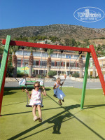 Ездила с 15 по 25 июня 2017 с детьми 6 и 13 лет. Про восхождение в жару к отелю писали многие, поэтому были морально готовы) вниз легко, до моря за 10 минут спускались, вверх мне было не сложно, а вот из за 6 летней дочери три раза брали такси ( стоят внизу, 5 евро берут), а на 4 дня брала машину в прокат (бронировала заранее по инету в автокрите). Объездила пол критасупер. С детьми: аквариум, динопарк, монастырь св.георгия, агиосниколас, озеро курна с черепашками (там же в деревне масло оливковое по 5 евро л), георгиополи- хорошие пляжи, красивый городок, пляж за малией. Питание в отеле отличное, разнообразное, рыба, мясо: телятина, кролик, ягнята, печень гов., индейка, курица, тефтели, колбаски гриль, шашлык, фарш в томате, овощи гриль, картофель фри, пюре, дольками, рис, макароны, овощи, броколли, цв.капуста, долма иногда, арбузы, апельсины, мороженое, сыры, сладкое, яйца, каша молочная, супы пюре, сосиски, соусы, колбаса нарезанная, запеканки. Не знаю, кому это казалось однообразным. Но отмечу, что первые дни было хорошо полупустой ресторан, всего вдоволь, тихо. А потом резко понаехало народу, столик не всегда свободный найдешь и небольшие очереди за вкусненьким, но еду всегда подносили, не заканчивалась. Отель многонациональный. Напитки в баре у бассейна в пластиковых стаканчиках, которые бескультурные туристы не всегда до мусорки доносят, а потом отзывы плохие пишут. Постель, полотенца меняли каждый день. Живности кроме комариков в номере не было, но мы брали фумигатор) корпус был Афина, по ночам тихо. Бассейны отличные, дети из них не вылазили. А инет действительно плохой на рецепции, поэтому заранее мне привезли в отель симкарту водафон, греч.оператора, за 17 евро 10 Гб инета - более чем на 11 дней) и по картам гугл ездила по криту, и дети фильмы мультф. смотрели. Анимации как таковой не было, с 2122 для деток все 11 дней одно и тоже действо, так что мы не ходили. Объехав другие городки для себя решила, что херсониссос с пляжем стар бич, с пенными вечеринками для деток лучшее место. А красивые пляжи у нас в Калининграде) Крит мне очень понравился! С удовольствием приеду сюда еще! Р.s. в начале сезона отель чистый, а вот потом очень много народа и персонал не справляется.