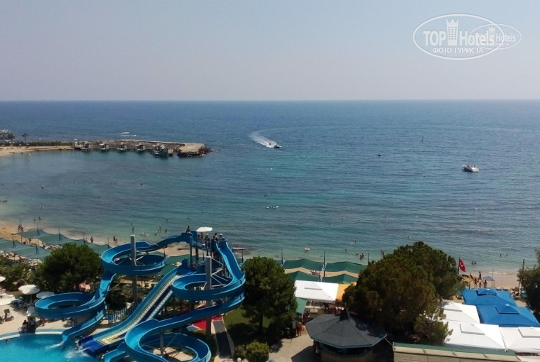 Отдыхали с семьёй с 17 июля по 25 июля. Хочу сказать, по фото ожидала большего. Но увы. Приехали 17 в 8 вечера. За доп.плату заселили в номер с видом на море. Номер хороший. Кондиционер дребезжал как сумасшедший. Первую ночь плохо спали из-за этого. Потом привыкли. Жаловаться не стали. В отеле проблемы с приборами ( вилками и ножами). В последний день ели ужин ложками. Полотенца меняются редко. Последние два дня было у нас их два. Одно для лица, другое банное. С мылом и гелем проблем нет. Ставят много. Воду докупали почти каждый день. Так как двух по 0,5 бутылочки нам не хватало. Еда нормальная. Голодными не были. Лежаки это да. За них надо сражаться. Территория клёвая. Море хорошее, но камни. Поэтому все люди толпятся в море в двух местах. В остальных местах заходить не реально. Но Средиземное море оно все равно самое лучшее ( есть с чем сравнивать). Порадовала пенная дискотека. Особенно могу отметить большой бассейн очень хороший. Я вообще никогда не купаюсь в бассейне, а в этом купалась. Вечером перед выездом из отеля заказали ланч бокс. Но увы мы его не получили. Спасибо злому мальчику на рецепшене. Что ещё. А в общем главное море и солнце. А человек приспосабливается когда всему ( встать в 6 утра, чтобы занять шезлонг; приходить на обед, завтрак, ужин попозже чтобы были приборы; привыкнуть к шуму кондиционера; вытираться всей семьей одним полотенцем; сушить белье на перилах).