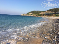 Понравился отельный пляж, можно загорать и на песке с камнями, и на пирсе и на травке, есть где посидеть в прохладе, единственное заход в море не очень. С одной стороны мелко и скользкие плиты, а с другой поглубже, но не очень приятные камни довольно крупные.