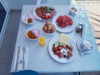 Завтраки. Отель только на завтраках. Писали, что завтраки однообразные, ужасные и вообще всё печально, скажу так: на вкус и цвет. Нам завтраки очень нравились. Каждый раз были яйца в вареном, жареном или в виде омлета. Бекон или маленькие сосисочки, маринованные грибы, гренки с сыром, два вида йогурта: клубничный и персиковый. Варенье, масло, вкусный кофе, не растворимая бурда, а зерновой. Из фруктов: арбуз, дыня, персики или нектарины, консервированные персики, фруктовый салат. Также можно было делать тосты, нарезки из сыра и колбасы, творожный сыр кубиками, оливки. Выбор был всегда, было разнообразие, все было вкусно, еду подкладывали сразу, как только она закончится. Минусы - выносить еду из ресторана было нельзя, штраф 5 евро. Работники в столовой - две киприотки, зорко следили за количеством еды, которую ты берешь, и между собой переговаривались, обсуждая, очевидно, возможность хищения пищи.