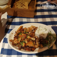 Кафе, рестораны. Я отношусь к тому типу людей, которые всегда ищут самый оптимальный вариант по соотношению цена\качество. Проштудировав Трипадвизор, я выписала несколько вариантов ресторанов, но в итоге питались совсем в других местах. В первый вечер ужинали в The Three Lions (третий в списке лучших мест в Трипадвизор, рядом с отелем Санни Блю). Еда была вкусной, но если сравнить с Капитаном Андреасом, который располагается в двух шагах, чуть выше по улице, - Капитан во всем выигрывает. В Капитане Андреасе всегда было очень вкусно, персонал капитана - Сам Андреас, его жена и его сыновья, все очень приветливые и внимательные, в первый день принесли комплимент - кисточку винограда. Цены в заведении очень демократичные, а порции просто гигантские. Мы с мужем (а муж у меня любитель покушать много) заказывали одно блюдо на двоих и салат за 3-4 евро. В итоге нам приносили гигантскую тарелищу пасты например, и чуть ли не тазик салата. Сумма среднего чека - 10-15 евро без выпивки. Кстати в последний день я узнала, что часто практикуется заказ половины порции.)) Турагент также рекомендовала Ocean Basket, но там было всегда много людей, заказа ждали по 2 часа, а ценник по нашим меркам был завышен. Еще одно неплохое заведение с хорошими ценами это Кota, расположенная на улице баров, и для тех, кто не привык объедаться, и кому по душе скромные порции, загляните в ресторанчик возле памятника "I love Aiya Napa". Я не помню названия, но он начинается почти сразу за памятником и в нем клетчатые синие скатерти. Соседствует с итальянским рестораном. Ценник там в районе 3-5 евро за блюдо, еда очень вкусная.