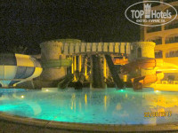 Территория отеля очень маленькая. Несколько водных горок упираются в бассейн. И почти касаются балконов отеля. Кататься на горках очень некомфортно: никаких кругов нет, и поэтому все швы на горках ощущаешь спиной и попой. Больно!