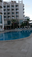 Море тоесть пляж отеля болото вода мутная дно щебенка галька выйти и войти в воду проблемма поэтому приходилось присмыкаться на соседних пляжах на воде в море не каких развлечений ты и вода вот и вся беда ни паращютов не лодок не бананов.В отеле пару столов бильярда и тенисный стол где конченные ракетки и постоянная очередь.Да еще каждый день дискотека до часу ночи ребенка невозможно уложить спать,в общих чертах отель для тех кто хочет экстрима испытать свои нервы
