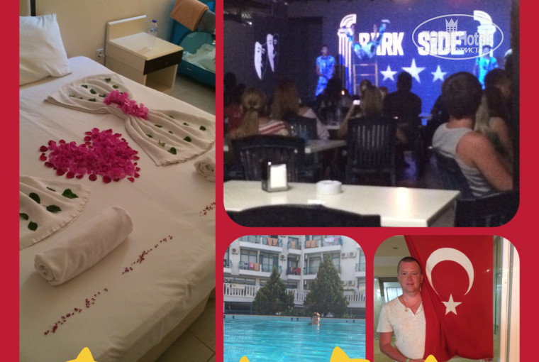 Начну отзыв с самого начала: Изначально настраивались на отель 4 -5 звезды,в связи с тем что на 5 ки ценники заоблачные, решили попробывать судьбу в трёшке, главные критерии были 1. питание - все включено 2. небольшой отель 3.собственный пляж ( бесплатные лежаки и зонты) ну и самое главное это цена и количество дней - хотелось не менее 10 дней... но так как ранее никогда не были в тройках ( Турция , Египет) то немного сомневались. Цены мониторили на разных сайтах , долгое время в итоге за три дня до вылета подкинулось хорошее предложение 15 ночей - за небольшие деньги 1000$ на двоих ... но отзыв по отелю от 2017 года был всего один ... но положительный( остальные 2015-2014 годов - все супернегативные) поэтому купили тур- кота в мешке... тур оператор Пегас..Вылетали с Казани , машину оставили на парковке( цены от 100 до 150 руб/ сутки) , вылет задержали на1-1,5 часа в связи с неисправностью самолета ... перевозчик Нордвин . Прилетели в Анталию ближе к вечеру , нас встретил микроавтобус с гидом , попутно завозили еще в 4 отеля, дорога заняла примерно минут 45-55 .. В отеле на ресепшене встретили как родных )) с улыбкой .. предложили сначала поужинать ( так как ужин уже заканчивался по времени) , но мы сначала заселились - номер 321 ,третий этаж , без балкона с видом на город ( четные номера с видом во двор отеля- на бассейн) ... Номер простенький но уютный , в номере три кровати (два обьедены в двухспалку и одна отдельная) + детская кроватка, исправный кондиционер - сплит система , не общий, тв ( три русских канала - 1 канал , ртр и тнт) , холодильник ( 3 бутылки воды в нем) сейф - платный 2 евро в сутки( думаю в нем нет особой необходимости - это мы поняли потом , так как уборка в номере производится взрослыми женщинами , иногда забывали ценные вещи на столе, ничего не пропало) , обычный сан узел( жидкое мыло и гель для душа) , есть фен , горячая вода 24 часа в сутки. в общем номером остались довольны ( хотя там только ночевали- поэтому вид из окон итп нас особо не волновал.