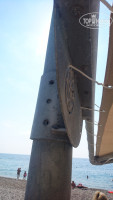 Пляж. Удобные большие навесы, хорошо защищают от солнца. Но будьте внимательны! Некоторые навесы плохо закреплены. Когда будете выбирать навес, смотрите на болты, которые удерживают навес! Лежаки, матросы в норме. Спасатель в поле зрения практически не попадал!!! Вот вам и безопасность!