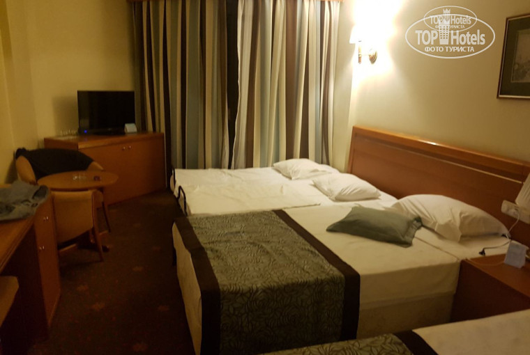 Недавно вернулись из Турции. Уезжать не хотелось! Отдельное спасибо хочется сказать аниматорам и поварам! Именно они вытянивают отель на 5. Спасибо им за прекрасный оидых. Анимация великолепная, весело и всегда есть чем заняться и детям и взрослым, даже из отеля выходить не хочется. Повара большие молодцы, все очень вкусно, шеф-повар всегда выходил и смотрел все ли довольны, подсказывал как будет вкуснее, с каким соусом лучше употреблять то или иное блюдо. Было много овощей, фруктов, десертов, несколько видов мяса и рыбы. Бабушка на улице, на териитории отеля пекла вкусные лепешки. В отеле 3 бассейна, в двух из них соленая вода и горки, правда работают горки только в одном бассейне. У отеля 2 пляжа, но на них не только гости отеля, пускают всех. Море чистое, мусор видели только один раз, и то его быстренько убрали. Из-за перегруженности отеля не всегда были столики в ресторане, приходилось поискать вилки. Wi fi не ловил.