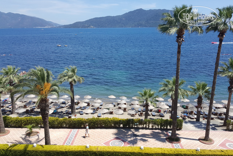 Были семьей в этом отеле в третий раз ! На этот раз дали номер действительно с шикарным видом на море! Правда , в нашем номере почему-то не было ни одной полочки , ни одного ящичка , только платяной шкаф с вешалками ( . Пришлось в качестве полок использовать чемодан - номер нам не поменяли ... все остальное - гель/шампунь, смена полотенец/пост белья/ уборка в номере - было регулярно ... выбрали этот отель в третий раз из-за очень вкусного и разнообразного питания и удачного расположения ; выход из отеля с одной стороны на пляж и набережную , с другой стороны в город... сам отель очень красивый, ухоженный !!! Очень выигрышно смотрится особенно вечером , когда включают подсветку отеля )... плюсы отеля - ЕДА , МОРЕ , РАСПОЛОЖЕНИЕ !!
