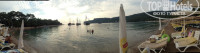 Два пляжа, с песком через несколько метров после захода и галечный, с разных сторон от порта.