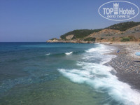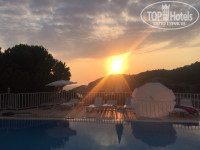 Отель расположен между двух дорог, слева от здания рецепции вниз ресторан, магазин и детская площадка, справа поднимаясь вверх по ступенькам бассейн, бар и номера. На территории достаточно деревьев и очень много цикад, которые не дают возможности услышать шум машин.