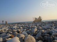 4) Пляж: есть бунгалки, написано, что они платные. Мы там не лежали, но и сказать, что кто-то ходил проверял, лежат там неоплаченные туристы или нет- не могу, такого не видели. Пляж сначала песчаный, потом крупная галька и нужна спец.обувь. Если такой нет, то можно пользоваться пирсом. С пирса- глубоко. Что бы кто-то следил за безопасностью не видели ни разу, хотя пост имеется. И да- лежаки достаточно далеко от воды.
