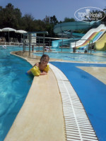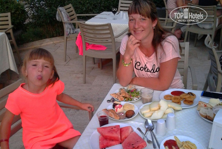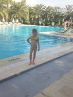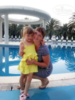 Добрый день.Отдыхали в отеле с мужем и двумя детьми 4 и 8 лет.В отель приехали в 20 часов на ресепшене дали 20$ ,мы так всегда делаем,оставили сумки и пошли на ужин,после него сразу дали номер в основном корпусе.Комната очень понравилась,все чистенькое,большая постель и двухъярусная для детей,большой балкон с видом на горы,хорошо показывал ТВ с нашими каналами (ТНТ,СТС,ОРТ).Ванная комната большая,с водой проблем не было.Очень остались довольны бассейнами,три огромных,всегда есть свободные лежаки.Еда была в изобилии.Рыба,мясо,арбузы,дыни,салаты,десерты,каши,выпечка,мороженое.Море я бы поставили 4- много народу, фантики и мусор плавает, ещё из минусов напитки в автоматах,за хорошими лемонадами надо было стоять очередь в бар.Огромное спасибо анемации,молодцы,дети их очень полюбили.Вообщем наша семья оказалась полностью довольна,а не большие минусы есть везде.