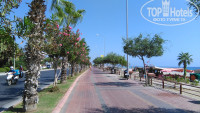 Рядом есть отели и магазины, в сторону от центра Алании. В сторону к центру по набережной магазинов меньше. Но они есть в глубине. Если выйти из отеля и пойти налево, никуда не сворачивая, дойдете до Метро, туда пускают без карточек, но дают бумажку, где надо вписать свои данные. В Метро прохладно, и ассортимент сильно отличается от нашего.