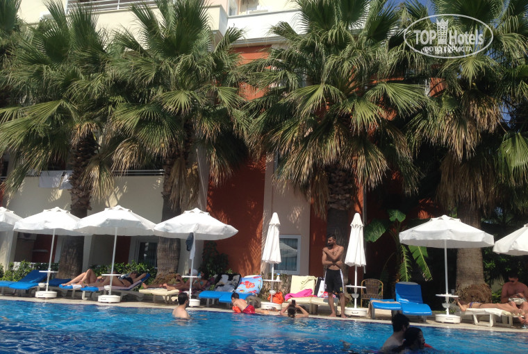 Отдыхали в троем, двое взрослых и ребёнок 3,5 года. Летели турецкой авиакомпанией oturair, если не ошибаюсь, огорчило питание- невкусные булки и неудобные кресла. Проблемы в отеле с заселением решились быстро-муж дал пару баксов на ресепшн и мы были заселены. Море и центр реально далеко! С ребёнком идти очень тяжело! Берите с собой коляску! В центр ездили пару раз на такси- заплатили 4 доллара в одну сторону. Питание- под конец надоело однообразие, ребенка есть чем накормить, если вы не очень привередливы. У меня был с собой рулон целлофановых пакетов, они очень пригодились)) утром брала булочки на пляж, а в обед фрукты. Бар- муж прикормил бармена чаевыми и проблем никаких не было первые 7 дней. Потом бармен отказался делать коктейли, сказал что люди очень много пьют и теперь наливают только пиво, вино и раки. Дождались Тимура- единственного русскоговорящего, он поговорил с барменом и коктейли снова появились))ребёнку очень понравился детский бассейн, да и большой бассейн супер. В целом больше положительных ощущений. Самый большой минус расстояние до моря