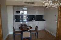Пляж чистейший, мест хватает, вода теплая. До 11.00 позагорали, покупались. Придя на рецепшен, узнали, что наш номер готов. Парень проводил в номер. И какого же было наше удивление, когда мы в него вошли: гостиная с диваном, креслами, 2 столами, стульями и кухней ( есть встроенная микроволновка). Спальня с огромной кроватью, журнальным столиком, есть большой комод для вещей. В каждой комнате - телевизор. В ванной комнате: ванна-джакузи, душевая кабина, биде, и... ( что привело супруга в полный восторг) сауна, которой он пользовался по 2 раза в день в течение всего отдыха. Когда же мы вышли на балкон, то вообще были повержены в шок, на балконе можно танцевать, стоит столик, 2 кресла и огромная восточная тахта с кучей подушек. Позже позвонили с рецепшен, поинтересовались, все ли нас устраивает и довольны ли мы номером. Ближе к вечеру принесли в номер халаты, бутылку вина и тарелку с фруктами и сообщили, что нам предоставляется право бесплатно посетить а-ля карт ресторан. Да, при заселении зашла старшая горничная и проверила, как номер готов к нашему заселению. Нам было очень приятно, что нас так встретили!