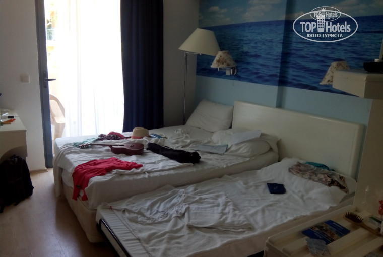 Отдыхали в этом отеле с подругой и дочерью в середине августа. Доехали довольно быстро, часа за полтора. Разместили нас через 4 часа после приезда. И тут у нас был шок. Вместо оплаченного двойного стандарта нам представили стандарт и просто приставили раскладушку. В номере было невозможно ходить. Место вообще не было, даже шкаф не открывался. Никакие скандалы на ресепшене вопрос не решили.Ну мы погрустили и решили не заморачиваться.