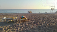 Пляж галечный. Есть вход с пирса. Народу на пляже немного. Всегда есть свободные лежаки. Правда стоят они и правда далековато. Бунгало платные, но платить за них нет смысла, надо просто занимать, никто ничего не скажет. Спасателей на пляже нет, но иногда сидел мужичок у бара, видимо наблюдающий и просто смотрел сериалы на телефоне.
