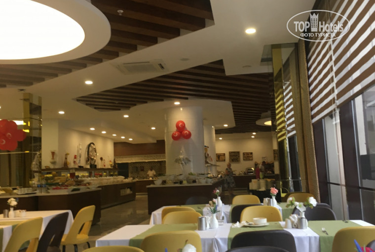 Отдыхали с ребёнком и мамой в августе 2017года.от аэропорта ехать 45 минут ,без пробок показалось очень быстро .Приехали в отель в 12:30 ,а заселения в 14:00.Нас проводили на обед ,а потом на ресепшене спросили какой номер нам нужен с одной кроватью или с двумя ,так как нам нужен был с двумя ,мы подождали ещё 30 минут и нас в 13:30 заселили уже !Все было очень любезно и дружелюбно !В номере кондиционер ,сейф (платный )телевизор ,чайник ,вода в маленьких и больших бутылках !Номера новые ,вообще,то что отель новый ,в нем приятно находиться !все новое,чистое!Wi-fi ,работает достаточно нормально на территории отеля и на территории пляжа где кафе !В бассейне мы не купались из-за шумихи по поводу вируса ,но и нас туда и не тянуло ,так как до моря идти 5 минут ,но ходил каждые 15 минут автобус ,висело расписание и он четко его соблюдал !море шикарное ,ребёнок в восторге ,вход в моря плавный ,везде песок ,никаких камней ,море тёплое !Для детей это прекрасное место для купания и игры в песок !На бассейне в основном отдыхали иностранцы,но все равно в 9 утра ещё было много свободных лежаков !Горки работают по времени !На бассейне всегда музыка ,бар ,в обеденное время анимация ,но мы не попадали ,так как были на пляже .Что касается ресторана ,накормить ребёнка было всегда есть чем!на завтрак правда только одна рисовая каша ,но яйца вареные ,омлет с овощами ,яичница это всегда было!частенько конечно была острая пища ,но это как попадётся !официанты подходили ,всегда узнавали ,что принести попить и приносили напитки !Убирались в номере конечно не очень хорошо ,быстренько и не очень качественно .Территория отеля маленькая ,но уютная и ухоженная !!нам с ребёнком было самое то !не убегал ,на территории есть пару карусель для малышей и горок ,нам хватило )мы часок гуляли там и все!анимация для детей конечно не разнообразная ,но аниматора -Алену очень все дети любят )есть игровая комната ,работает по времени ?Алена с детками там рисуют ,лепят ,раскрашивают ,мультики идут !Каждый вечер после детской дискотеки начиналась программа ,огненное шоу ,театр ,пенная вечеринка !можно и кальян покурить для взрослых и у бара посидеть !В отели есть магазинчик ,но если выйти из отеля и пойти налево ,то там есть "мигрос "супермаркет и базар дешевле все ) !можно купить что угодно ,и ещё на базаре хорошо поторговаться !Около пляжа прогулять вдоль моря можно ,там как набережная очень зелено !В отели есть фитнес зал ,фотограф ,доктор ,крытый бассейн ,спа-центр !Нам очень понравился отдых с ребёнком там !и даже если поедем ещё ,то возможно и в этот отель !!!!Небольшой ,чистый ,уютный !!Сотрудники все отеля очень дружелюбные к русским ! Кстати отдыхающих очень много русских было )