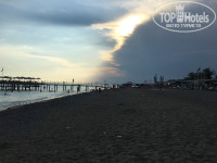 Пляж не совсем песчаный, встречается и галька, поэтому входить в море сложновато. А за счёт песка море мутное, не прозрачное. Старались заходить с пирса.