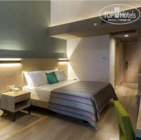 Номер стандартный, на 4+; с видом на море, я так поняла, вообще нет, максимум на бассейн. Двухместные номера небольшие, но вполне комфортные,имеются телевизор, мини-бар(который ежедневно пополняют), большая душевая кабина, фен, сейф и др. за счёт того, что окна выходили не на бассейн, было тихо и никто не шумел. Уборка номеров вполне приличная, хотя пару раз нам пришлось попросить чтобы номер убрали. При въезде в номере не было халатов, тапочек, одеял. Почти весь персонал говорит на русском, поэтому особо проблем не было.