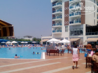 начну с того, что в Турции не первый раз. всегда ездили в 5*. на этот раз себе не изменили.приехали около 11-00ч. на завтрак опоздали,но одели браслеты и можно пользоваться всеми барами,что бы перекусить. но не это главное, а заселение. сразу сказали,что есть не большие проблемы. свободных номеров нет,а есть только один на минус первом этаже и надо только ночь переночевать.а там, как вы понимаете, нет окон.это был чистый развод на деньги мы платить не стали и сутки прожили там. а одна семья заплатила 10$. на утро после завтрака нам поменяли без всякой доплаты номер на 4 этаже.но,конечно же,ни кто не помогал переезжать(чемоданы не таскали).и затем наступил наш отдых.отель стоит удалённо от населенного пункта.ходить особенно не куда. только до местного рынка,состоявшего из двух магазинчиков,да по пути спортплощадка с тренажёрами. вечерами очень хорошая анимация (водное шоу,турецкие танцы,фокусы и т.д.) и главное:ни каких вирусов!!! не выходите на открытое солнце с 12 до 16 и все будет хорошо! приятного отдыха!!!