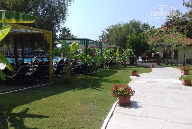 ТЕРРИТОРИЯ: Большая, зеленая, ухоженная. Все бассейны чистые. Шезлонги всегда можно было найти свободные. Единственный минус - это ковровое покрытие на ступеньках на горках: оно во многих местах порвано и скользкое от зеленой плесени. Мне, не очень было приятно купаться в одном бассейне с турецкими женщинами, они в одной и той же одежде и в ресторан ходят и на море, и в барах едят, и на траве лежат, а в бассейне купаются. Но это мое личное восприятие и их обычаи, от которых никуда не деться. Я просто уходила в другой бассейн.