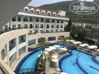 7. И самое интересное , это ХАММАМ отеля !!! Если решите пойти туда , можете передавать привет черноволосой женщине с ресепшена хаммама , которая выдаёт полотенца ! Когда мы решились на этот хаммам , который стоит 30 долларов с человека ,эта женщина сказала , что это уже со скидкой , но наш гид сделал еще скидку , и мы пошли за 25 долларов за человека ! Когда она узнала об этом , она даже вся покраснела от злости и начала кричать что -то по -турецки! После этого , она перестала отвечать нам на наши вопросы и полностью игнорировала ! А в какой то из дней , когда мы пришли за чистыми полотенцами , она в лицо мне сказала ," забирай полотенца , я то не жадная как некоторые ", в общем впечатления гостеприимности отеля было испорчено ! Она ужасно неприятная женщина , мы платим нормальные деньги за хаммам , честно даже спускаться из-за неё больше не хотелось , вроде женщина немолодая , в ведёт себя слишком противно ! Хаммам не впечатлил совсем , подругу делал мужчина , меня девушка ! Так почему нам обещали 1,5 часа удовольствия , а меня отпустили спустя 40 минут , подругу через 1. Все по разному , если пойдёте в хаммам , лучше обратиться к мужчине , массаж он сделает намного лучше ! В принципе все ! Отель нам понравился в общем ! Территория маленькая конечно , но очень уютная и у бассейна днём весело ! На бюджетную 5 он тянет ! Тем более за эти деньги ! Наш гид Наиль , супер ! Ему огромное спасибо , помогал во всем !