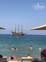 2. Мы отправились на пляж ! Туда ходит автобус , каждые 30 минут и кому так лень идти 10-15 минут в принципе можно воспользоваться им . Мы за все 7 дней ни разу на него не сели, ведь мы и ехали за жарой и прекрасной природой . Идти мимо маленьких магазинчиков и вдоль прекрасного парка с потрясающей набережной очень интересно ! Нам было весело и интересно , мы и в 13:00 , и в 14:00 могли пойти , жара не помеха , главное на голову что-нибудь надеть . Пляж не очень большой , с мелкой галькой ! Лежаков хватало всегда , особенно после обеда и ранним утром ! Часто играла музыка , правда напитки на пляже бесплатно , но ужасно невкусные , кроме кофе ! Кофе очень даже ничего !) Море супер чистое , голубо-прозрачное ! Уходить было не охотно !