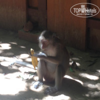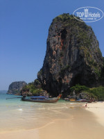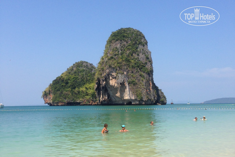 Много кафешек по близости. На выбор несколько пляжей, жаль что нет лежаков на море т. к. их запретили во всем Тайланде если я не ошибаюсь. Ходить можно на пляж у отеля (лучше на правую сторону, т. к. на левой острые камни в воде, которые видно при отливе), можно еще дальше вправо через скалы на другой пляж. Делать там нечего (как по мне), но прогуляться можно. Можно попасть на него и в обход через лес(ходили 1 раз, тоже прикольно. Проходили мимо какой-то деревни или это был отель похожий на растаманский). Третий пляж технический, на него приплывают лодки с туристами из Краби наверное и подвозят продукты и прочее для кафе, которые расположены вдоль того пляжа. 4-й пляж называется Прананг (вроде, не особо помню названия пляжей). Идти до него от отеля метров 800-1000, но это ни сколько не напрягает. Дорога проходит мимо красивых скал. На тропинке бывают обезьяны (будте осторожны! Если вы просто идете мимо, то ничего. А если шуршите пакетом или захотите их покормить, то могут накинуться как стая диких собак ). Прананг самый красивый, но на него возят кучу туристов. Где-то с 9-10 часов и до 12 там не протолкнуться, потом подрассасывается. Есть на Прананге пещера плодородия. Поесть тоже не проблема, стоят лодки с едой.