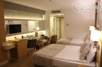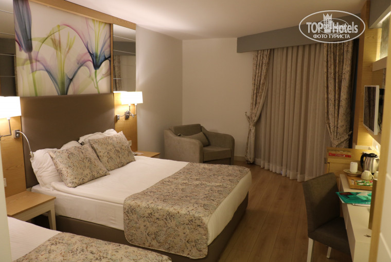 1. Отдыхали двумя парами в двух разных номерах - номера одинаковые, стандарт, у нас был номер на третьем этаже 1320, выходил на боковую улочку (вид на отель СУРАЛ и базарчик), на восток, в плане ночного отдыха хороший вариант, никто под окнами не играл, кричал и т.п. Гнезд ласточек и их следов на балконе не было, все сохло хорошо. Балкон держали закрытым, на ночь включали кондей. Сейф платный - 2 евро в день.