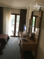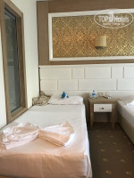 Отель в целом не плохой,питание и территория понравились.Но номера!Когда мы приехали менеджер Артём заселил нас в номер с запахом сырости,с видом на какую-то крышу .В номере две маленькие кровати и для ребёнка старое раскладное кресло.Я так устала с дороги,путь от аэропорта не близкий,что ругаться и менять номер не было сил.Но муж пошёл договариваться,чтобы номер хотя бы дали с одной двухспальной кроватью на что тот же Артём говорил,что номеров стандарт с двухспальными кроватями у них нет.Мы заплатили и нам дали номер категории повыше,но хоть кровати нормальные и сыростью не воняло.А семья которая заселялась после нас начала ругаться с ними,что им дали плохой номер и в результате им БЕСПЛАТНО заменили номер.Но повторюсь мы очень устали и стоять на ресепшене ,выяснять по номерам не было сил.Еще был не приятный случай из номера украли мои дорогие духи и это не смотря на то,что мы оставляли чаевые.Стали выяснять ,оказалось в тот день у нашей горничной был выходной и её кто-то заменял.Естественно духи не нашли.Ну а в остальном всё было хорошо.Территория красивая,чистенько,аниматоры для взрослых хорошие,девочки которые проводили степ и аквааэробику молодцы.Бармен Мустафа всегда с улыбкой,видит -здоровается.Очень приятная девушка Марина (гид Пегаса).Она настоящий профи своего дела и просто хороший человек.Еда в отеле вкусная ,каждый найдёт себе что-то по душе.Были в рыбном ресторане.Очень вкусно и обстановка располагающая .Море замечательное- тёплое.На территории есть небольшой аквапарк (три горки),детям будет интересно.Отель достаточно не плох.Весь персонал ,(кроме как мне показалось менеджера Артема ) очень отзывчивый и улыбчивый.