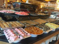 Сладкий стол на уровне - турецкие сладости, много тортов на любой вкус. Кофе Nestle, обошлись чаем). Турецкий можно было выпитьв кафе у амфитеатра только, что мы и делали в течении дня. Детская анимация супер!!! Можно привести ребёнка с 9:00 и до 17:00(только кормить и укладывать спать надо самим), поэтому удобно, когда хотите уйти за покупками.