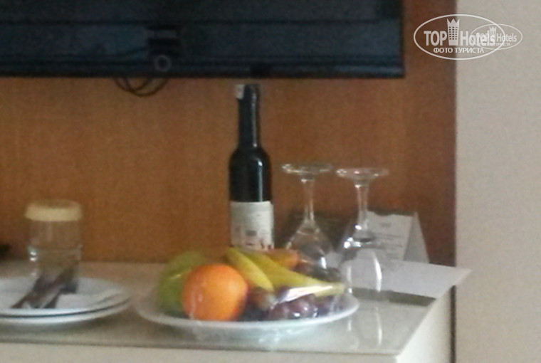 В номере халаты, тапочки, комплимент от отеля в виде фруктов и бутылочки вина, две шоколадки, приветственное письмо. Кондиционер сбоку от кроватей, в лицо не дует. В мини баре ассортимент более разнообразен, чем в первом отеле. В коридорах духоты нет.