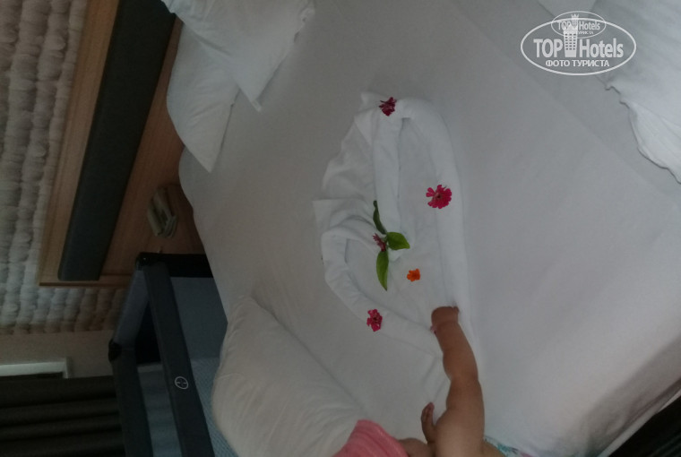 Брали путевку в Пегас Туристик. Летели с семьей за границу в первый раз, с маленькими детьми, очень переживали. Хорошо что наши переживания были напрасными! Прилетели мы туда где то в пол 4 утра, автобусом через полтора часа доехали до отеля. Там нас заселили сразу (главный корпус, номер 6204). Номер был уютный, убирали каждый день, мини бар заполняли тоже каждый день. Еда разнообразная, вкусная, мяса было очень много! Море чистое, теплое. Есть хамам, сауна, также платные спа-процедуры. Мы сходили на комплексный массаж за 30 долларов, девушки молодые им большое спасибо так классно делают и пилинг, и массаж, молодцы!!! Детки играли в большом детском клубе, никогда не скучали, спасибо аниматорам, девочки стараются всегда на позитиве! Отдых нам понравился, персонал приветливый, все вежливые и отзывчивые! Минусов отеля мы не нашли и не искали в принципе..