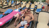 Пляж и море. По приезду пляж был чистым, потом как-то подзагрязнился такое чувство, что его просто перестали убирать, но спустя время снова стали чистить от мусора. Лежаки на пляже всегда были свободны, но козырные места занимали с утра. Море это сказка, 29оС, прозрачное, чистое и соленое) Ребенок хотел забрать море с собой))) Заход в море трудноват из-за каменистого дна и резкого обрыва. Я и муж порезали пальцы на ногах долго заживали, т.к. постоянно в соленой воде.