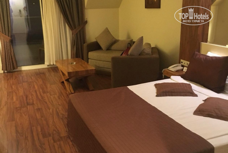 Всем добрый день! Мы с мужем недавно вернулись из Кемера, отдыхали в Медере с 7.09.2017 по 12.09.2017. У нас остались одни положительные эмоции от отдыха! Обо всем по порядку. Наши приятные впечатления об отеле начались с заселения, как только мы вошли в отель, нас одурманил очень приятный запах в холле, все было очень красиво, блистало, сияло. Мы сразу поняли что не ошиблись с выбором отеля. Затем мы подошли на ресепшен, там нас встретила очень приятная администратор по имени Кристина, она была очень вежлива и доброжелательна, очень мило улыбалась, в совершенстве говорила русским языком, скорее всего она сама из России. Она предложила нам заселиться в наш номер, который был уже готов, прибыли мы в 20.00 вечера, а заселение по правилам у них, в 14.00. Так что наш номер был уже готов к заселению, не пришлось ничего выбирать, а тем более платить за номер! Затем к нам подбежал сотрудник отеля и схватил наш чемодан, чтобы доставить его до номера, было очень приятно)) Нас заселили на 4 этаже отеля, там работает лифт, так что подниматься пешком не пришлось)) Когда мы зашли в наш номер, нашему восторгу и удивлению не было предела, номер оказался с видом на соседний отель и на горы, как мы и хотели, а также в номере нас ждал сюрприз, так как мы молодожёны, нас ожидали фрукты и вино, нам было очень приятно)) В общем заселение прошло на высшем уровне! Фото нашего шикарного номера и сюрприза приложу ниже. Затем мы переоделись с дороги и пошли на ужин, ужин в отеле с 19.00 до 21.00, мы как раз успевали. Пришли мы в столовую, там было очень огромное изобилие еды, и у нас разбежались глаза. Мы очень вкусно наелись и пошли прогуляться по территории отеля, в основном она состоит из огромного бассейна, который ночью очень красиво светиться, фото приложу ниже. В итоге наш первый вечер в отеле прошёл на ура, впрочем как и все 5 дней прибывания в этом шикарном отеле. Утром мы вкусно позавтракали и пошли знакомиться с пляжем нашего отеля( пляж Мунлайт). Пошли пешком, несмотря что туда ездиет бесплатная маршрутка, каждые пол-часа. Но нам было интересно самим прогуляться, идти оказалось от силы 10 минут прогулочным шагом мимо магазинчиков с сувенирами. На пляже бесплатные лежаки, в отеле нам выдали бесплатные пляжные полотенца. Море было чистое и прозрачное, а так же очень тёплое. На пляже есть свой бар, там играла очень приятная музыка, можно было брать там безалкогольные напитки, а так же бутерброды на перекус. Пляж песочно-галечный, заходить в воду безболезненно. К обеду мы вернулись в отель и пошли на обед, он там с 12.30. Как всегда нас ждала очень вкусная еда.