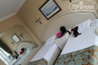 Нам сразу одели бирки, предложили оставить чемоданы в холе. И мы нетеряя времени позавтракали и ушли купаться. Заезд официальный у нас должен был быть в 14, но заселили в начале первого. Подойдя на ресепшен и один раз напомнив о себе. Денег мы не предлагали, хотя говорили что 20$ ускоряют процесс. Я отблагодарила работника (10$), когда он уже повел показывать номера, и помог мне с чемоданами и помог разобраться с сейфом.