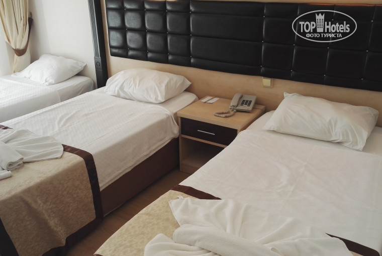 Больше всего разочаровались в номерах. Очень грязно. По углам паутины. Пыль. По номеру ходили в сланцах. Уборка для галочки. Выносили только мусор каждый день. За 10 дней один раз поменяли белье и полотенца, причём полотенца унесли, а новые сразу не принесли, три раза обращались на ресепшен. Пол в комнате протирали не каждый день, а в санузеле так вообще один раз за все время. Сантехника старая, вода утром холодная, видимо, экономят на подогреве. Плохое освещение в номере. Приехали в отель в 8 утра, нас сразу предупредили, что заселение в 14, но если мы оплатим спа-программу за 25$, то заселят сразу. По еде: готовят неплохо, но мяса очень не хватало( По утрам вкусные йогурты, много разных сыров, свежая выпечка была. Омлеты , овощи гриль с большим количеством масла жарятся. Из фруктов были арбузы, дыни зеленоватые, апельсины местные, виноград, редко груши. Соки были из автоматов какие-то порошковые. Из алкоголя: пиво больше похожее на квас, вино так себе, местные джин, водка и раки, из которых и коктейли делали. С 10 до 16 работал снек-бар, там можно было собрать себе гамбургер, но котлетки в них были соевые( Тут же женщина пекла лепешки турецкие. В 16 туда же приносили сладости, но по сути это те же пироженки, которые есть и в обед, и на ужине. Хорошая анимация, хоть и повторяется каждую неделю. Каждый день, кроме воскресенья. С 10 утра до 23. Гимнастика, водная аэробика, всякие конкурсы у бассейна, танцевальные уроки, вечером в 21 программа для детей, а после шоу-программа для взрослых. В течение дня ребята из анимации зазывают ехать в клуб aura. А где-то с 23:30 всегда была дискотека в подвальном помещении до 1:00 ночи. Пляж очень маленький по сравнению с соседними, пирса своего нет. Галька хорошая мелкая, по ней не больно ходить. Интернет бесплатный только в лобби и ограниченный 600мб на весь период проживания.