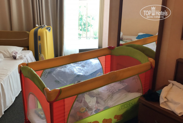 Номе: Номер у нас был на третьем этаже 323, все номера крошечные стоит одна двуспальная кровать (две кровати объединены), манеж поставили ребенку с матрасом и заправлено постельное белье, и кровать для старшей дочери. Очень маленький номер еле там расходились, постоянно друг на друга наступали что бы пройти в туалет по микро коридорчику)) В номере чайника НЕТ, холодильник есть, но он платный, бесплатно дают ТОЛЬКО для тех у кого маленькие дети и нужно хранить детское питание (просите вкл холодильник на ресепшене). Уборка каждодневная и убирают хорошо, за 11 дней один раз поменяли постель и то на 10 день) Ни каких муравьев и тараканов не встречали! В номере конечно обои отклеены, где то даже кусками заклеены (на фото видно), как бы мы на море приехали и номер нам не так важен, просто за такую цену что они берут за отель могли бы и ремонтик в номерах сделать. Ванная с туалетом совмещенная, вода шла хорошо и холодная и горячая, ванная по бортикам в плесени, как то сразу бросается это в глаза. В ванной лежало мыло, гели и шампуни, нитки, шапочка для головы, туалетная бумага и постоянно все это добавляли каждый день! Полотенца меняли каждый день!!! Знакомым дали номер на первом этаже и они жаловались что слышна музыка от анимации до 24 ночи, а потом слышен шум на улицы проезжающих автомобилей. Шум изоляция ужасная соседей слышно так что кажется как будто они у нас в комнате))) Кондиционер работал исправно если его правильно настроить на крестную точку тогда можно с ним спать ночью не выключая в комнате комфортно! Балкон угловой выходит на бассейн и видно море, на балконе НЕТ веревок и вешалок где сушить белье, сушили белье на пластмассовом столике и стульях что стояли на балконе. Света в номере как то маловато хотелось бы ярче и больше. Розетка большая ее можно купить в киоске 2 евро или взять в аренду на ресепшене за 5 евро, деньги вернут как вернете розетку. (Фото розетке прилагаю) Советую отелю сделать ремонт в номерах!