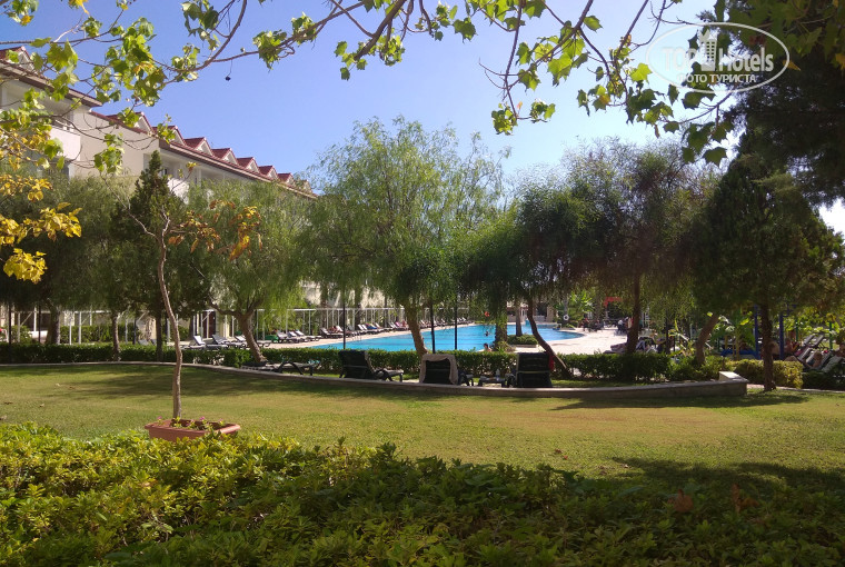 Отдыхали семьёй с ребёнком 1,4 года в середине сентября. В отель приехали в 20.00. Заселили сразу. Из-за отсутствия стандартных номеров поселили в семейный. Номер из 2 комнат. В каждой по 2 кровати. Точнее по 2 матраса, положенных друг на друга! В одной из комнат душ и туалет, в другой просто туалет. Телевизоры старые, но показывают нормально. Из русских был канал Россия. Уборка номеров стоит отдельного поста. На фото ножки ребёнка, походившего по полу после уборки! Просто чёрные от грязи и пыли...Кровати застилали, но белье не меняли. В мини баре была вода, которую не пополняли. Благо, во всех барах ее можно было взять самостоятельно. Мы жили в 6 корпусе. До столовой (рестораном это назвать нельзя) надо было пройти прохода метров по 100 каждый. До моря в 3 раза дальше. Пляж песчаный, но в воде много огромных камней, о которые просто травмировать ноги, если постоянно не смотреть куда идёшь.. Море чистое, но все дни были волны. Волнорезов нет. Волна приходит с кучей песка, так что детям у берега плескаться возможности нет. Территория зелёная, но тени практически нет. Только под тентами в барах. И по дороге к пляжу через определённые промежутки сделаны навесы. Питание очень однообразное. За 10 дней только 2! раза появилось новое блюдо, которое не досталось большей части отдыхающих. Детского стола нет, нормальной еды для маленьких детей тоже, хорошо, что взяли с собой что-то. Что-то покупали в аптеках (детское питание, каши и перед, к примеру, продаётся в Турции в аптеках) Персонал недображелательный. Обслуживание с ухмылками и явным стёбом на своём языке. Ходили по столовой с моющей машиной прямо за гостями, не пропуская людей. Мне, вообще, один раз наехали на ногу сзади. Было полное ощущение, что специально. Он меня видел, шёл за мной, я его нет. И с традиционной ухмылкой произнес Sorry.. Анимация никакая. Не видели ни разу. Ни детской, ни взрослой. Про шоу программу ничего не могу сказать, поскольку, уходили рано спать из-за ребёнка. Посетили по предварительной записи a la carte ресторан. Был заявлен рыбный. Нам принесли все те же блюда, что подавали каждый день! Просто нет слов. Общее впечатление от отеля - это тройка, не больше. И люди, говорящие, - мы приехали отдыхать, поэтому не обращаем на все это внимание, вызывают у меня недоумение. Поскольку деньги были заплачены за 5*, а услуги получены на 3...Не рекомендую этот отель.