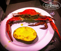 На обед и ужин выбор гарниров и мясных блюд был велик, угощали креветками, крабами, готовили свинину, национальные блюда, супы на французский манер, арбузы и дыни, особенно понравилась лазанья, только к крабу не дали приборов, те основное тело они вскрыли, но так как я ем и клешни, то пришлось надкусывать их зубами. В конце отпуска, загрузка отеля была полной и на ужин всех разделили на 2 смены и за каждым номер закрепили свой столик, что было удобно, не надо было искать сервированный столик, а пришел и сел, правда одна русская мадам пыталась прийти первее нас и занять наш столик в первую смену, хотя у нее была 2. Если вы записались в 1 смену, а вам нужно во вторую, администратор найдет Вам свободное место, это не проблема.