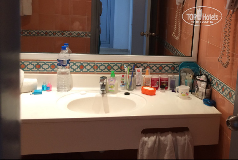3. Номер. Все увидите на фото. У нас был семейный, состоящий из коридора, прихожей, туалета, ванны, двух комнат и двух балконов. Многие (как и я до отлёта сюда) задают вопросы и не получают на них ответы. Где же находятся семейные номера? Не знаю как все, но наш находится не в главном корпусе. Главный, как я понимаю (в котором ресепшн) новый, а наш корпус достаточно старый, отсюда и пошарпаные стены, мебель и тд. При заселении был сломан сейф и пульт от телевизора. К вечеру все работало. Основные минусы нашего номера: освещения практически нет, только прикроватные бра и один торшер, вещи сушить негде, благо есть два балкона и на них есть стулья. Но нашей семье из 4х человек нахватает этих стульев. На других балконах я видела небольшые сушилки на стенах. В номере некуда положить вещи, только в шкаф или разбрасывать по столам, благо их в номере аж 7 штук (вместе с прикроватными). Зато шкафы огромные, у нас дома меньше)))) Раковина в ванной тоже старая, в царапинах. Крючки в ванной (см.фото) для полотенец или одежды просто не предназначены для того чтоб на них что-то вешать, у нас всегда валяется все на полу. Двуспальная кровать очень сильно трещит, когда на неё ложишься. Муж сегодня заглянул под неё, оказалось она сломана (см.фото). Белье визуально чистое, но есть пятна которые видимо не отстирываются. Детская кроватка очень убитая, на ресепшне нам сказали, мол они все такие, что вы хотите за 8 месяцев! Я то лично себе ничего не хочу и не требую, просто хочу для ребёнка чистую кроватку. Хорошо наша уборщица принесла две большие простыни и мы завесили ими всю кроватку, хоть так. Уборщицы кстати очень приветливые, всегда с улыбкой, активно учат русский язык, молодцы, обязательно свою отблагодарим. В номере было всего два стакана. Берите с собой хотя бы одноразовую посуду. Если на рынке купите фрукты или соки, их тупо будет не из чего есть и пить. Один главный плюс номера, это размер, очень просторный, но не хватает мебели, стульев, может маленького диванчика и конечно ящиков. Ни у одного стола нет ящиков! Итог: если номер отремонтировать, добавить центральное освещение и поменять мебель, этому номеру цены не будет.