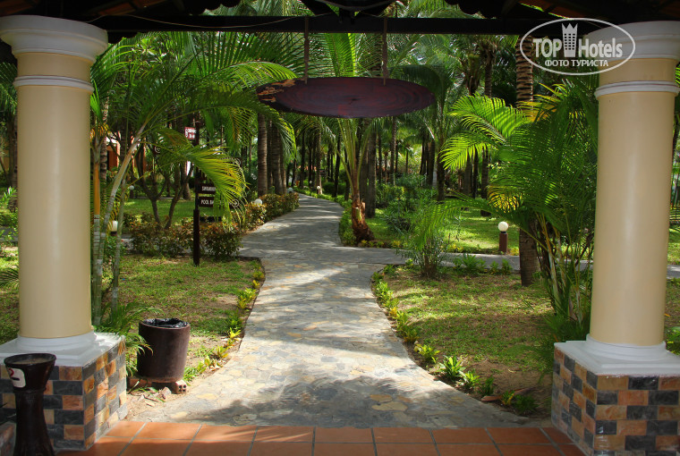 Это просто нереальное место, все в зелени, все чистенько, постоянно убираются, стригут травку, поливают- одним словом РАЙ. Пруды с рыбками прекрасны, вечерами ползают улитки и квакают лягушки. Днем можно встретить местных белочек и кошек. Море и пляж сказка. Песок как мука мелкий и горячий, море каждый день было разное, то спокойное, то волны, то немного штормило, в любом его проявление мы купались и радовались отдыху. На территории отеля 2 больших бассейна и 2 детских. Никогда и нигде не купались, всегда пахло хлоркой. В данном отеле хлорку никто не добавляет и при этом вода кристально чистая и теплющая, купайся не хочу, только знайте и не забывайте, что купание во Вьетнаме в сентябре возможно с 6.00 до 10.30 и с 14.30 до 18.00, а в остальное время просто сгорите заживо. Поэтому по приезду покупайте специальные рубашки, которые продают местные жители,прям на пляже, можно поискать на местных рынках конечно, но выгода не велика. Стоимость рубашек (детских, взрослых) 120 000 донгов (курс 2 650 000 донгов это 100 долларов, на русские все просто 120*2,6=312 рублей). Обменник прям на ресепшене, самый высокий курс и он именно в отеле. Но если вы все таки сгорели - пентанол или алое вера вас поставит на ноги очень быстро, все продается в любых магазинах за территорией отеля. Вовремя отдыха, были тропические дожди, на 4ый и 10ый день отдыха он начался внезапно и через 10 минут так же внезапно куда-то и исчез. Была ночь, когда он шел без перестановки, но с утра и не осталось от него признаков.